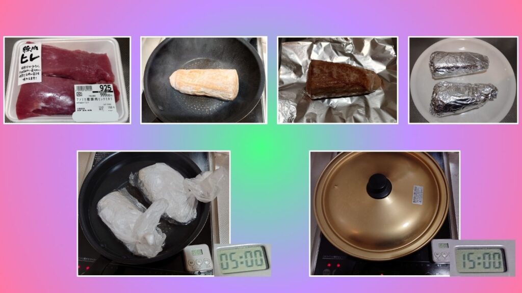 - 焼き上がった肉をアルミホイルで包み、さらにその上からラップで包みます。ラップで包むことで、より密着させて包むことが出来ます。さらにポリ袋に入れ、なるべく空気を抜いた状態で封をします。ポリ袋は耐熱効果のあるものがおすすめです。